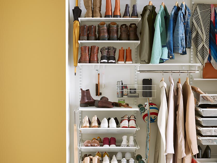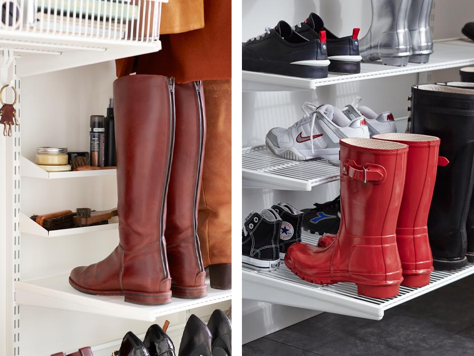 Use the space all the way up to the ceiling and sort your shoes according to season. This way shoes you don’t use right now don’t take up valuable space, but are still easy to find when the season changes.