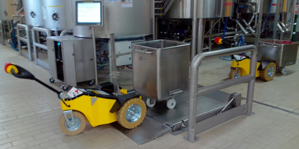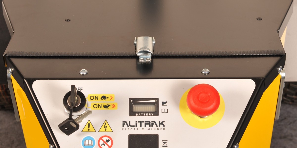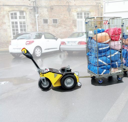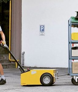 Alitrak Outdoor Pedestrian Electric Pusher and Puller with Automatic Coupling Attachment.