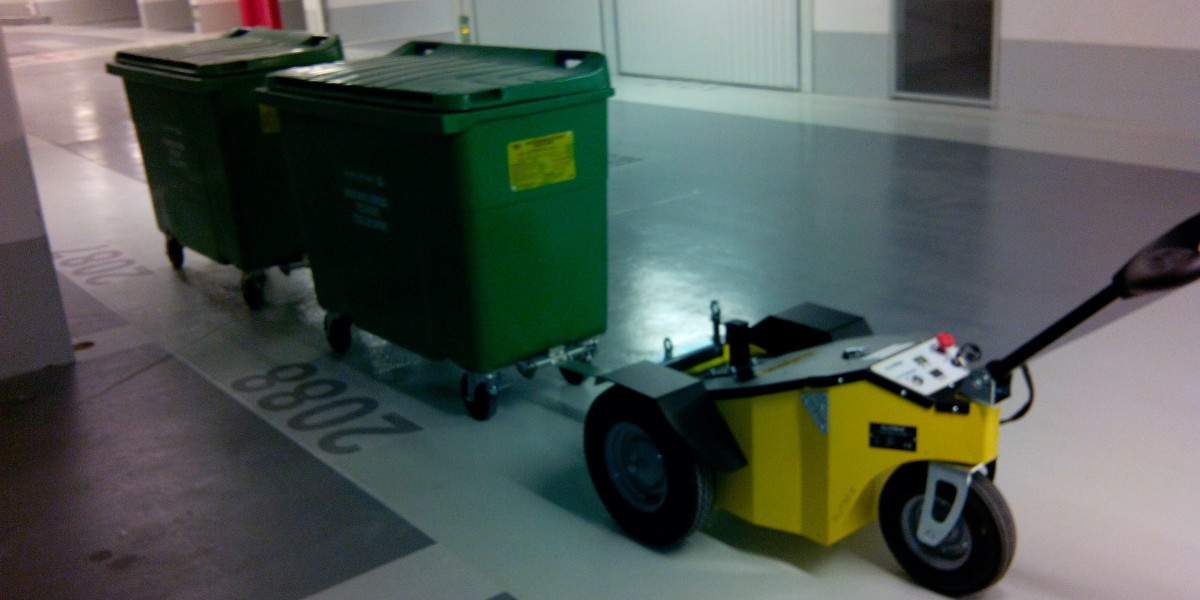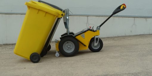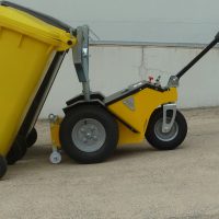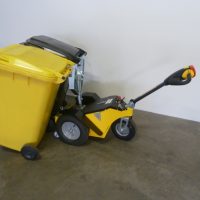 Moving Wheelie waste bins on ramp with Tow Tug OT900 / OT1200