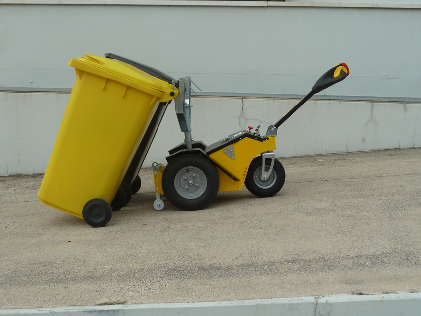 The smaller size of the OT-600 means that it is easily maneuvered and can be used in small spaces. The design allows for pushing or pulling and comes with a standard connection post and antidumping support wheels. With the addition of the trailer ball accessory or the waste container connector, the OT-600 can handle many tasks. Additional options are solid non-marking tires, safety operational light, ballast and many different attachments.