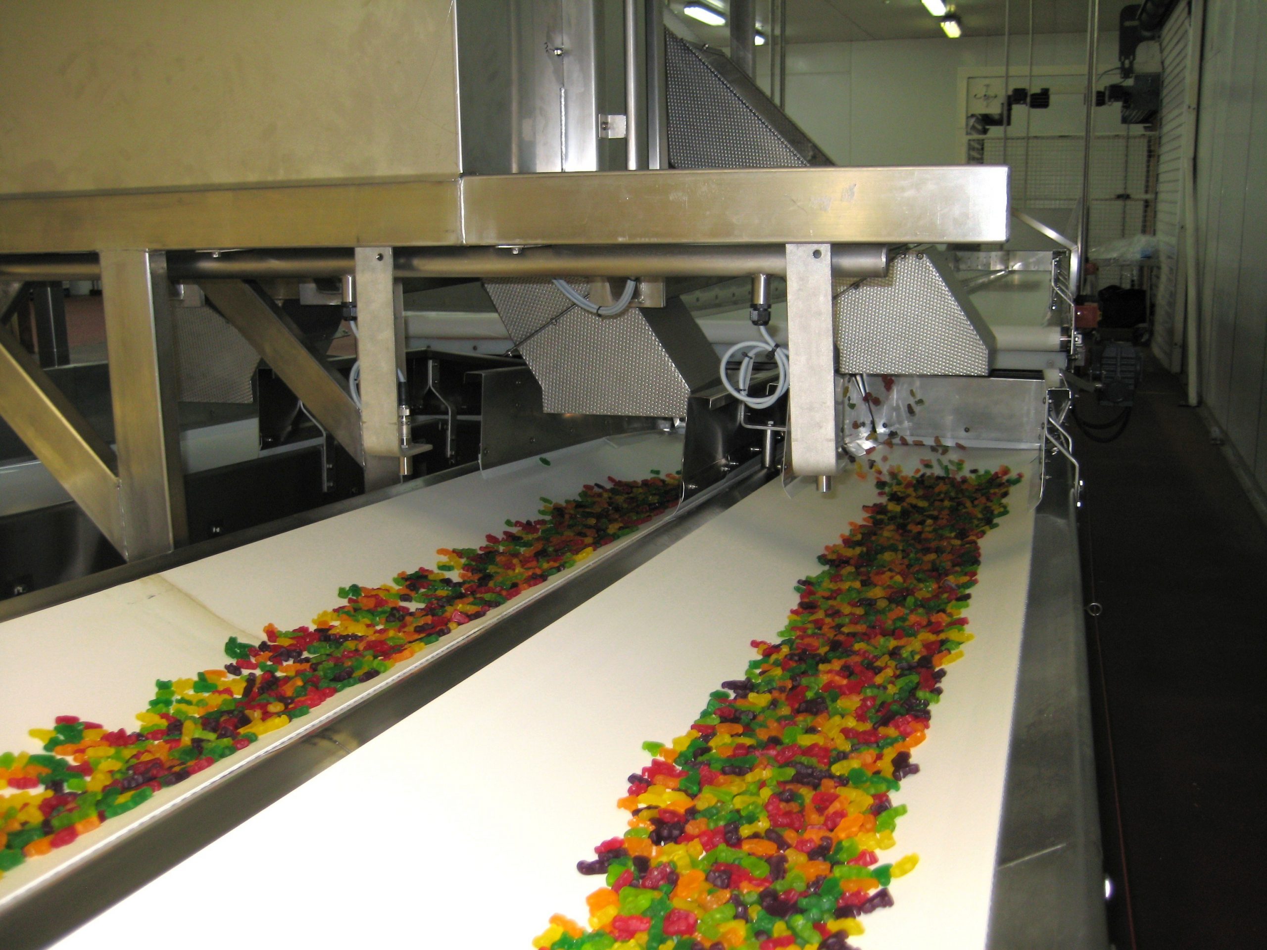 - Modular belts or slat band conveyors are ideal for packing and bottling lines.