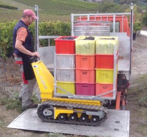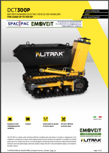 The DCT-300 is an ecologically designed pedestrian controlled electric vehicle, featuring a heavy duty frame and stable track propulsion. The DCT-300 is extremely effective in the vineyards and orchards, in building sites and indoors, in tunnels or underground and in places where tracked traction and zero emission are essential. The version “Performance”, with special motors and drivers, allows the best benefits during the work and grants bigger autonomy (product image with 220 lt. skip and rear tower with hydraulic pump, not included in the basic version)