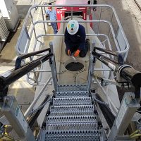 Folding stairs from Carbis Solutions give your operators safer access to vehicles of all height configurations. The design features a self-leveling tread capability that provides level access to the tops of a variety of trucks heights. Talk to us about how we can help you exceed regulatory fall prevention requirements.