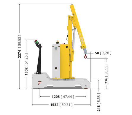 Just Lift’s JL250 counterbalance floor mini-crane is an innovative hydraulic lifting solution, compact and ergonomic, designed to simplify all operations related to the lifting and handling of light loads up to 250 kg. Its small dimensions make it extremely versatile and suitable for use even along narrow aisles. One of its crucial features is its rotation system: thanks to a steel turntable ball bearing, the 270° rotative movement is made fluid and light. The Just Lift JL250 crane has been designed and studied with the aim of accelerating and optimizing all operations related to lifting and logistics, increasing productivity and always paying the utmost attention to operators’ safety and ergonomics.