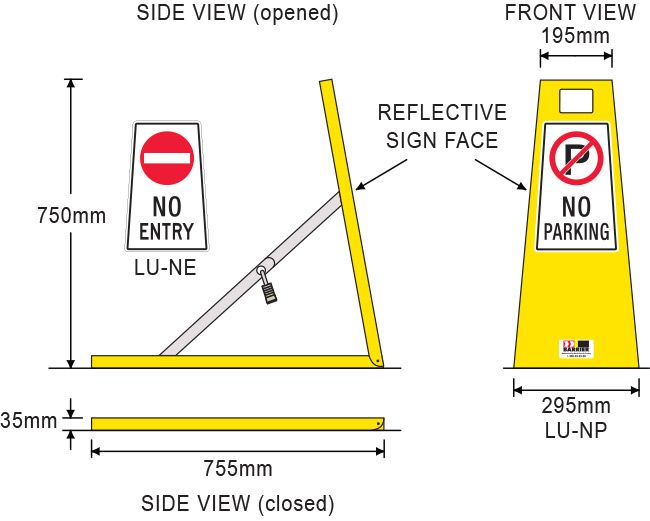 Lok-up is a collapsible steel parking and vehicle access barrier that locks in both the up and down positions. Steel construction and large footprint ensure maximum strength and durability. The minimum closed height of 35mm opens up to a working height of 750mm. A large reflective sign face and safety yellow powder coated finish provide maximum visibility day or night.