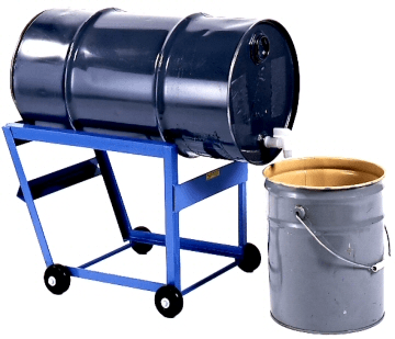 - In pouring position, the drum rim will be 13.75″ (35 cm) above floor for dispensing into your 5-gallon pail.