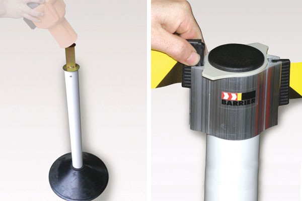 A post & base unit designed to accept the Skipper unit. The UPVC posts are available in Safety Yellow and are 63.5mm in diameter. The heavy rubber base offers stability. Belt height 990mm. (Skipper not included).