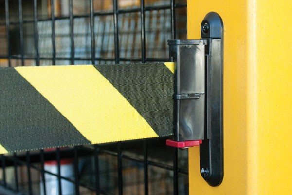 Retracta-belt Wall Mount units are designed for wall mounting where floor space is limited or post and base units are not appropriate. This model is particularly useful in large span situations such as warehouse aisle closures and loading docks etc.