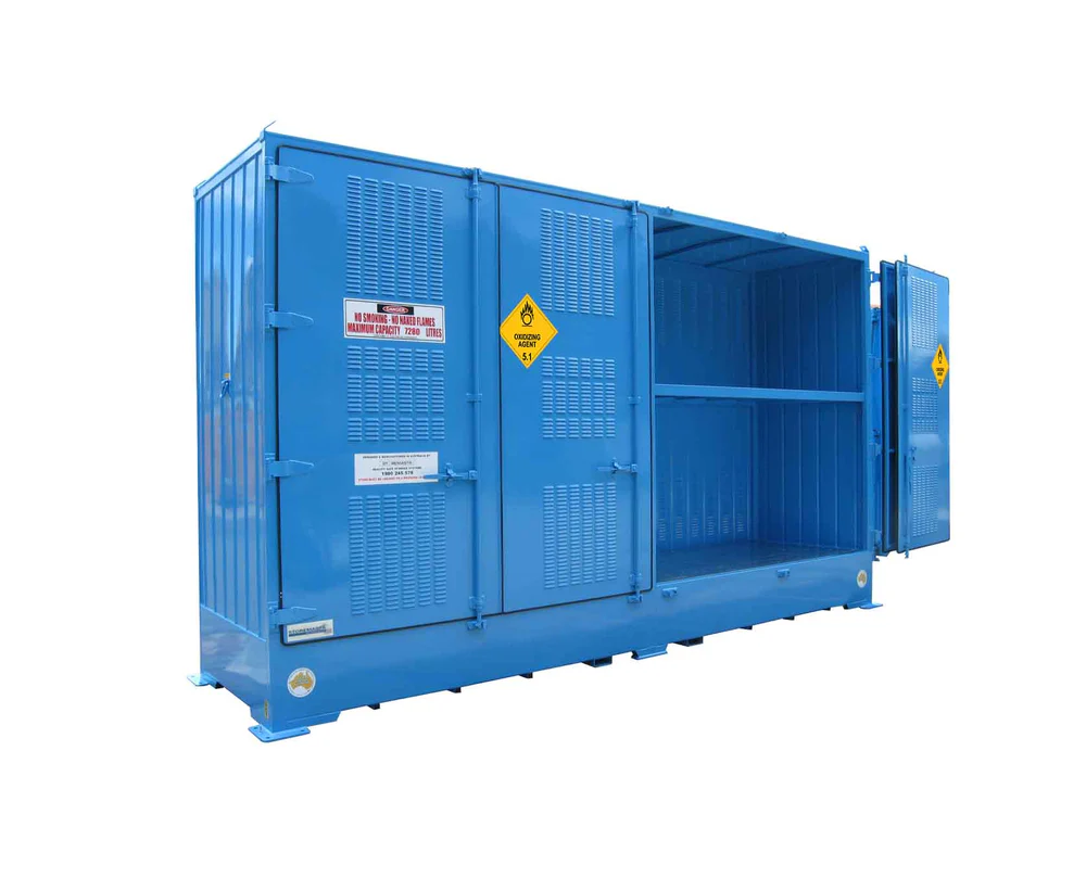 This Australian-made Relocatable Bulk Dangerous Goods store has a capacity of up to 8000 litres of oxidising agents.