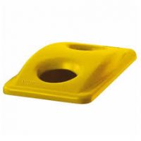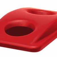 Interchangeable, color-coded tops promote waste separation: slotted blue top for paper; green, blue and brown round-hole tops for glass bottles, jars and metal cans; Gray handle tops for general refuse.